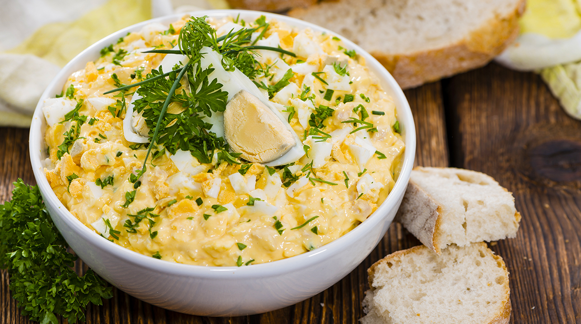 - 2. Corte os ovos em quartos, no sentido do comprimento. Corte cada quarto em 3 pedaços no sentido da largura e transfira para a tigela com a maionese.